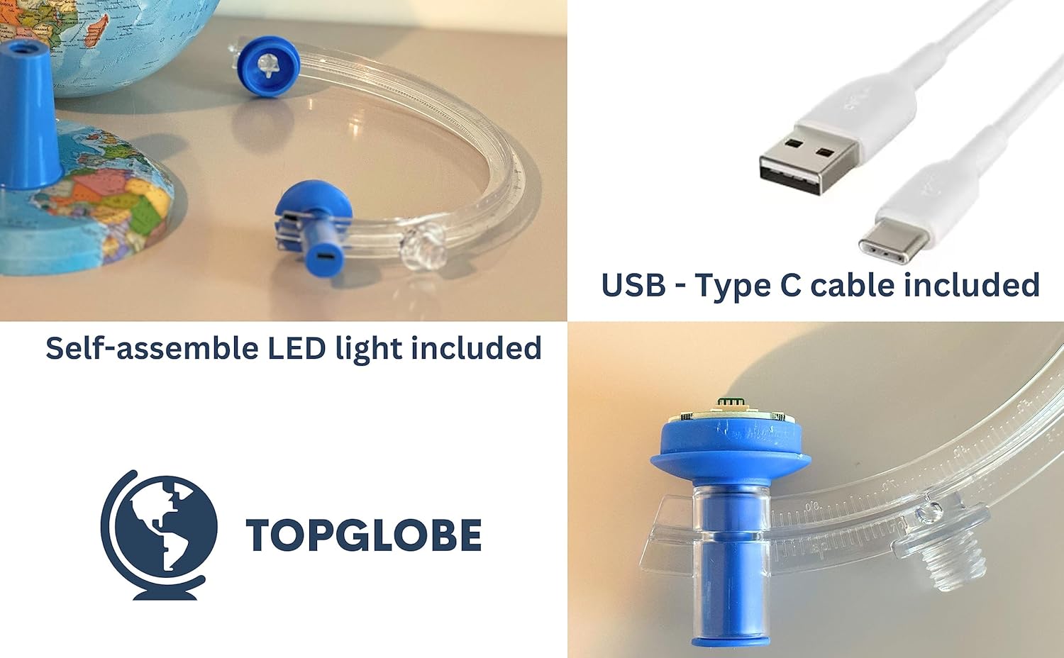 Topglobe TOPGLOBE Beleuchteter Globus 20 cm – französische Karte – moderne politische Globe – Dekoration für Bildung/Geographie/Büro