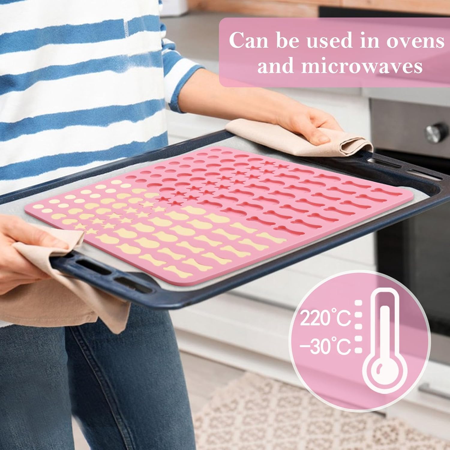 Backmatte Hundekekse, Silikon Backmatte Hundeleckerli 5 Formen in 1 Backunterlage Backform für DIY Hundekekse und Leckerlis (130 Gitter, Halbkugel Fische Knochen Stern Herzform)
