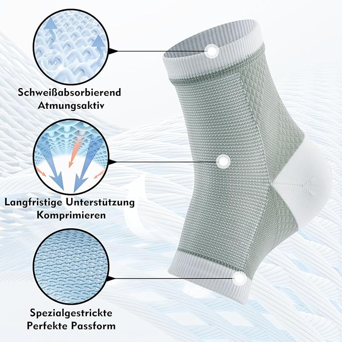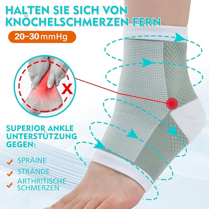 【Schutz des Knöchels】 Die stützende und stoßdämpfende Wirkung der Sprunggelenkbandage Männer kann verhindern, dass unsere Knöchel verletzt werden. Mit hoher Kompression und Elastizität, Stützsocken für Frauen bieten starke Unterstützung für unsere Knöchel, die Gewährleistung der Stabilität während des Trainings und absorbieren ein gewisses Maß an Impuls, wodurch das Risiko von Sportverletzungen. Neuropathie Schmerzlinderung für Füße passen perfekt mit unseren Füßen, um die Blutzirkulation zu fördern und machen unsere Bewegung flexibler.
