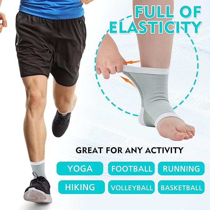 【Multisport-Verwendung】Die Knöchelstützsocken können für eine Vielzahl von Sportarten verwendet werden: Laufen, alle Arten von Ballsportarten, Radfahren und Klettern, usw. Sie verbessern die Blutzirkulation und verringern die Ermüdung beim Sport. Knöchelbandage Socken passen sich perfekt an unsere Füße an, unterstützen unsere Knöchel und verlangsamen die Überbeanspruchung der Muskeln.